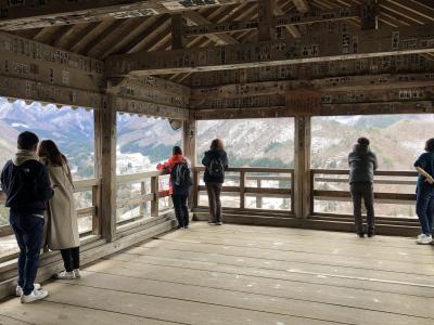 立石寺は比叡山延暦寺の別院として、860年慈覚大師・円仁が開山した天台宗の名刹である。1000段あるという階段を登って主要な建物を見るだけでも1時間はゆうにかかる。まず根本中堂から中に入ると、芭蕉・曾良像が立ち、すぐ先に堂塔伽藍が建つ。続いて念仏堂、鐘楼、山門をくぐって急な階段を登る。すべてを書き出すことはできないが、一番上にある奥之院まで、右に左に多くの建築、石仏、岩壁が続き見どころ満載、素晴らしい、の一言だ。- 旅行時期
