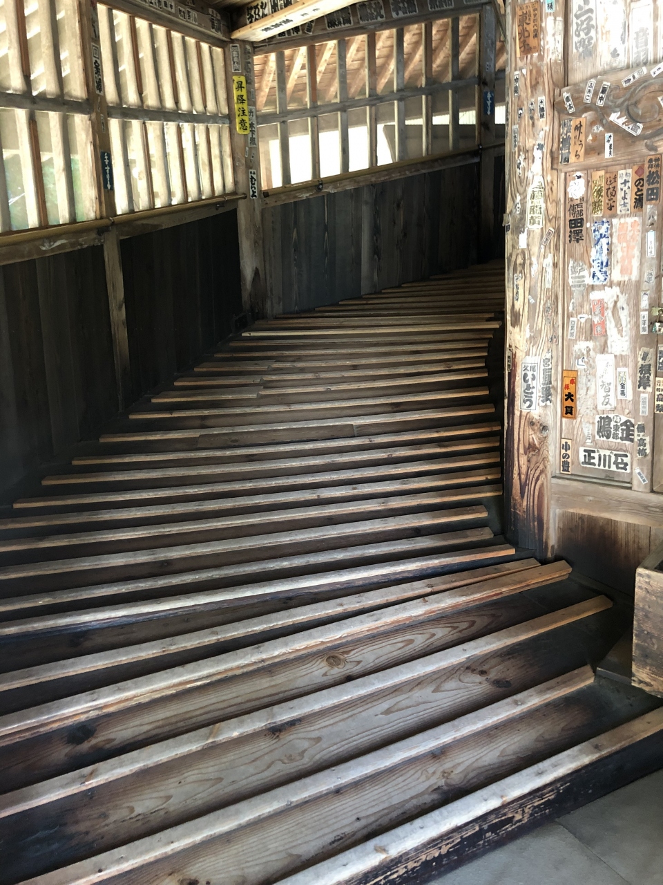 正式名称は円通三匝堂であるが、サザエのような形をした六角形で3層建て、高さが16.5m、1796年に建築され、国の重要文化財に指定されている。螺旋階段になっていて、六稜三層建て内部の西国三十三観音を巡拝するための階段が、参拝者がすれ違うこと無く安全にお参りできるという珍しい建築様式である。- 旅行時期