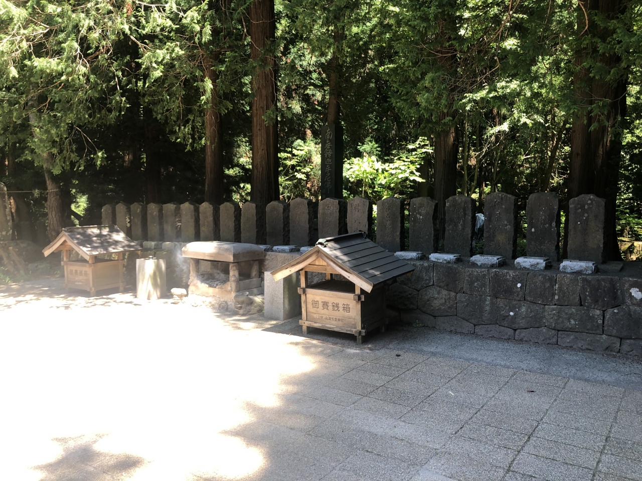 白虎隊19士の墓は、スロープコンベアを登り切って更に少し登った平場にある。1868年の戊辰戦争の際、ここから鶴ヶ城が落城よる様子を見て、19人の隊士が命を絶ったという。その遺骸は官軍により埋葬することを禁じられ、村人によって密かに埋葬された。