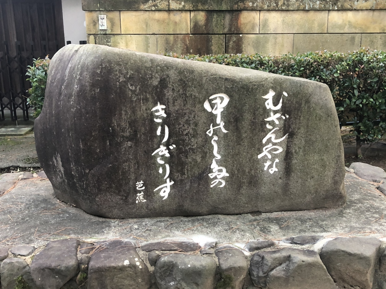 「奥の細道」巡りを続けている。芭蕉は金沢を発って小松の多太神社に立ち寄って、「むざんやな 甲の下の きりぎりす」を詠み、境内には句碑が建てられている。