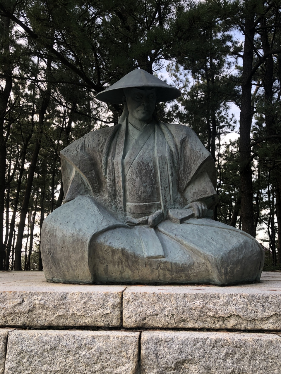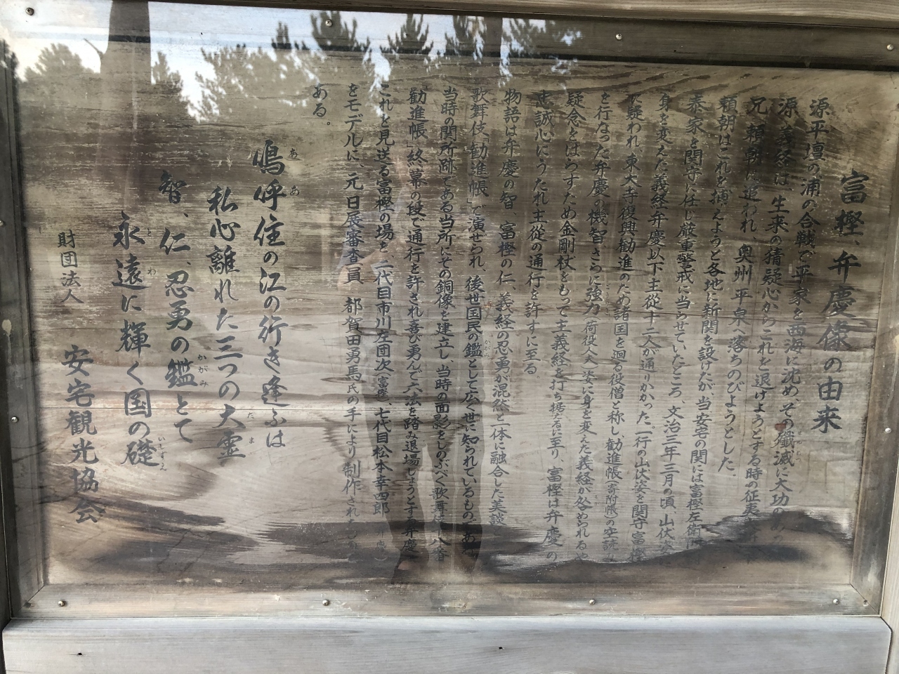 関址は安宅住吉神社境内にあり公園として整備されている。銅像の武蔵坊弁慶は七代目松本幸四郎が、富樫泰家は二代目市川左團次がモデルとなっているそうだ。しかし、ここに関所があったかどうかは定かでないそうだ。- 旅行時期