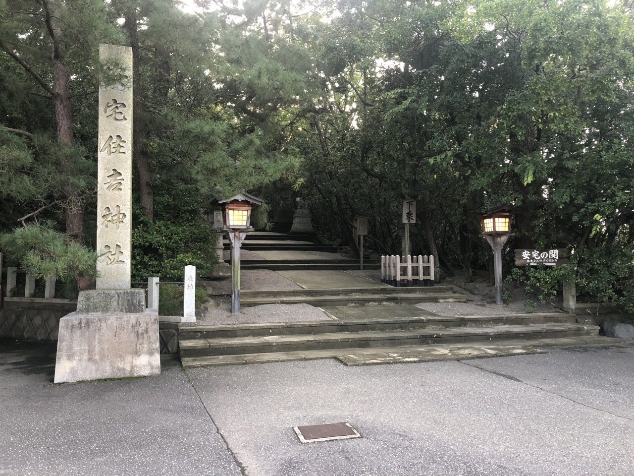 安宅住吉大明神として782年に創建された由緒ある神社、1647年に現在の二堂山に落ち着いた。海陸の北陸道の要所にあり、旅人の崇敬を集めたという。境内の奥には勧進帳で知られる安宅の関があり、奥州平泉へと逃れる途中、弁慶の機転により義経は難を逃れた。このことから難関突破に霊験あらたかであるとか。- 旅行時期