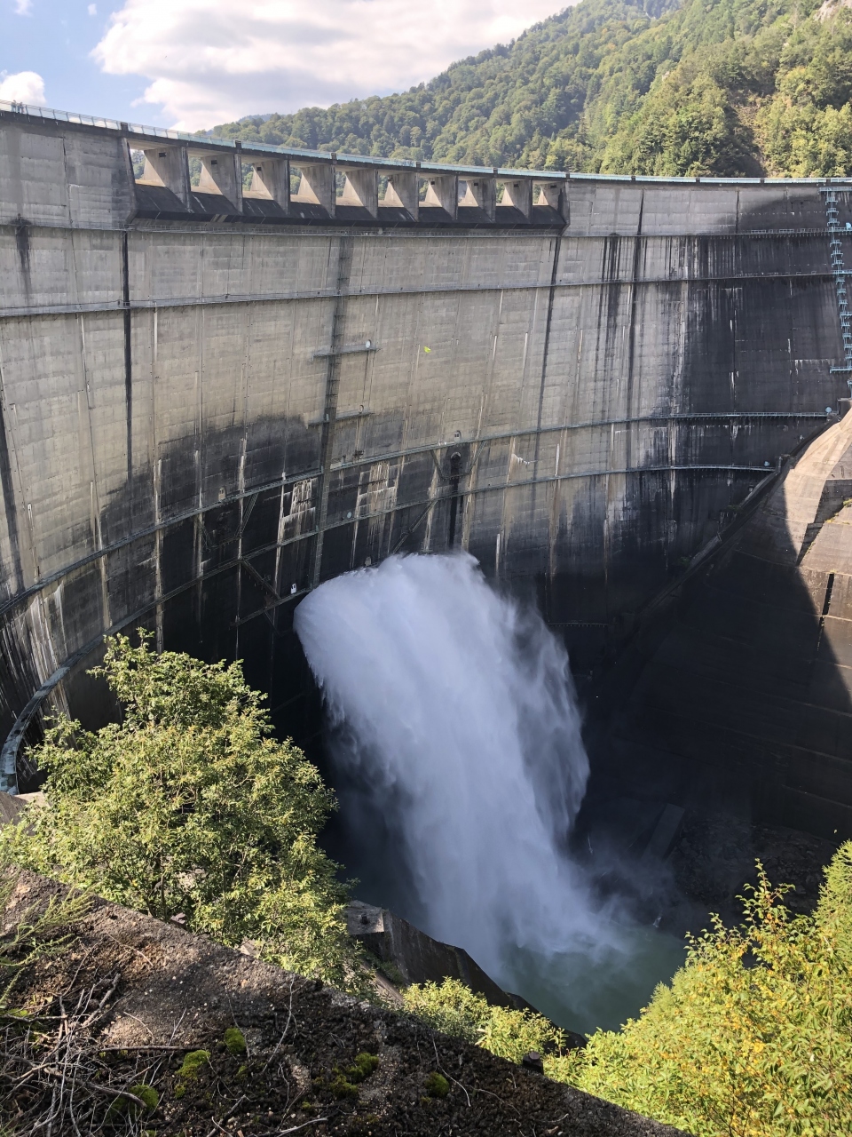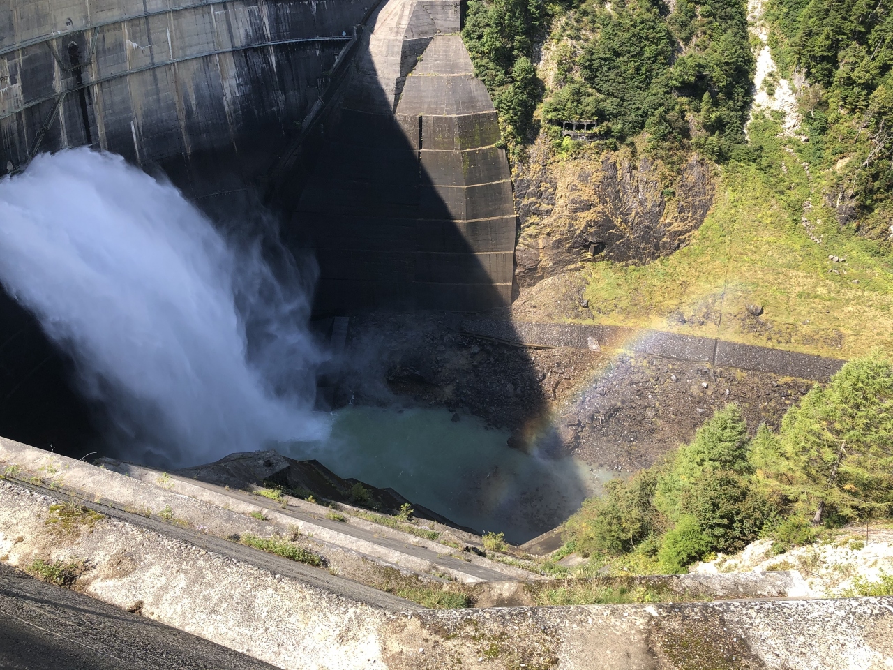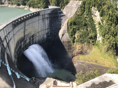 「黒部第4ダム」は大自然の中、難工事を乗り越えて昭和38年に完成した高さ186m、長さ492m、最大発電量335メガワットの日本最大のアーチ式ドーム越流型ダムで間近にみるダム本体は迫力十分。毎秒10t以上の水を吹き出す観光放水は迫力満点で、期間は6月下旬~10月中旬。関電トンネルの難工事の詳細は小説「黒部の太陽」に描かれている。関西地区の電力不足に貢献したという。- 旅行時期