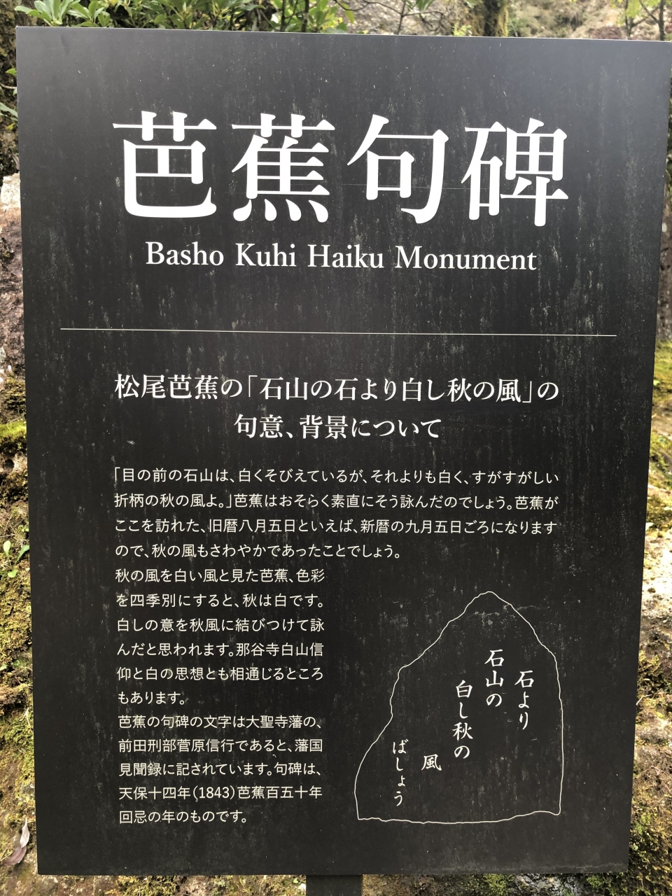 「奥の細道」巡りを続けている。芭蕉と曾良は山中温泉に立ち寄り、全昌寺に宿泊した。ここで芭蕉は「庭はきて 出ばや寺に 散る柳」、曾良は「夜もすがら 秋風聞くや 裏の山」を詠んだ。
