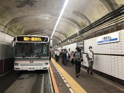 「黒部の太陽」で名高い関電トンネルを走る電気バスで、黒部ダムと扇沢を16分で結びアルプス直下を走る。すべてトンネル内で、景色は全く見ることができない。破砕帯から多量の地下水が湧き出し工事が難航した箇所は、破砕帯という掲示で表示されている。- 旅行時期
