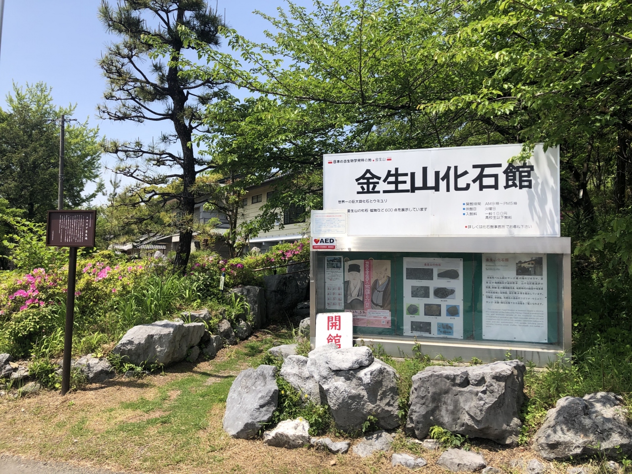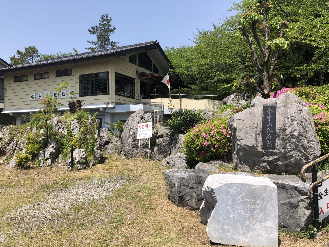 金生山は約2億年前の古生代の化石の宝庫、化石館にはここで出土した化石約700点を展示