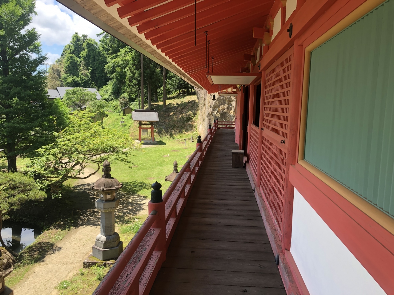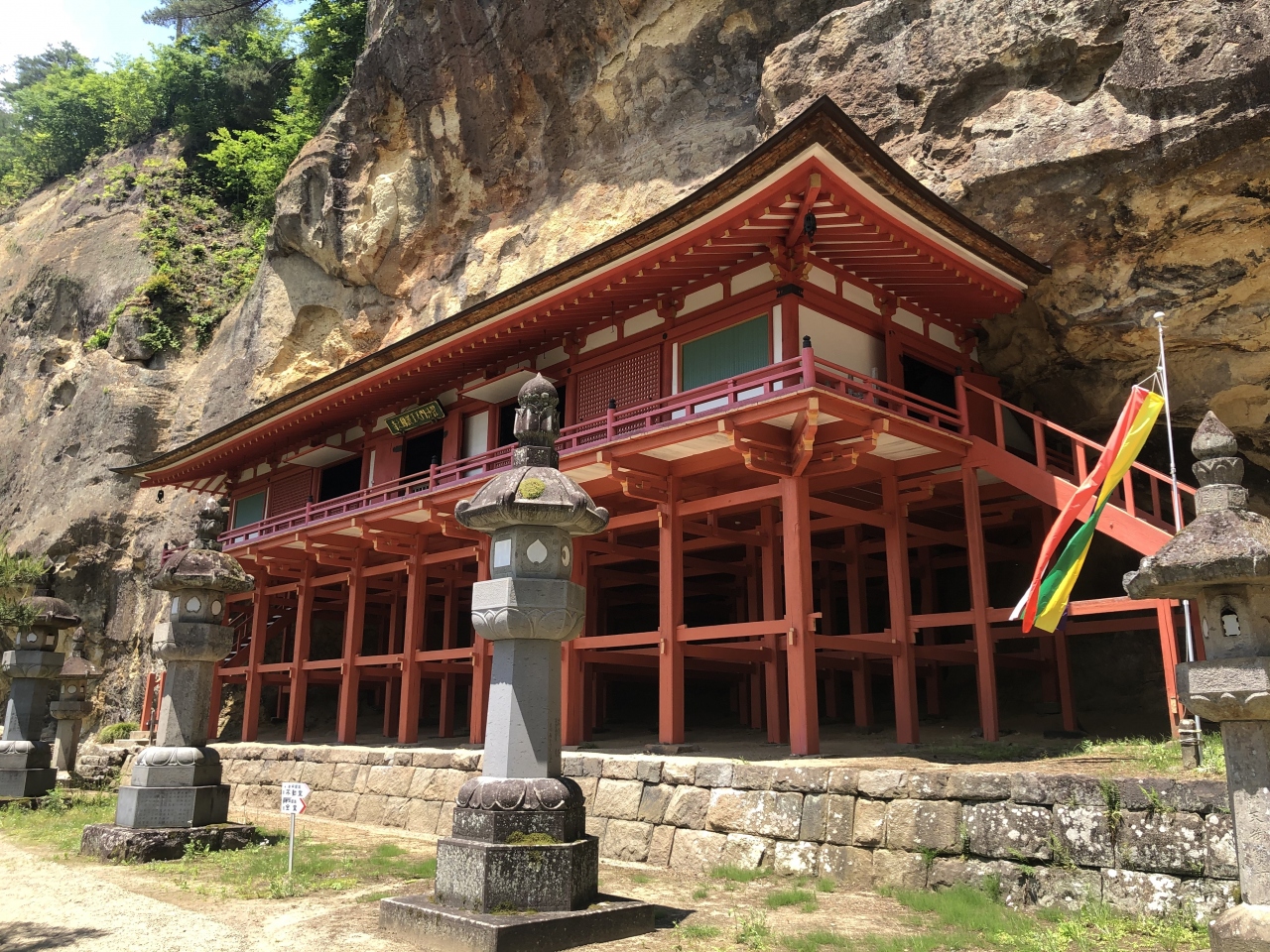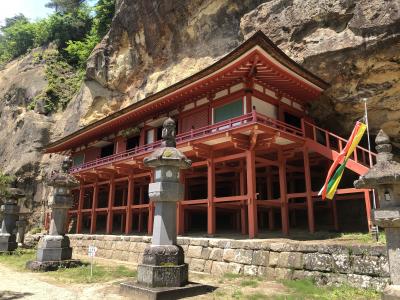 創建は801年、征夷大将軍であった坂上田村麻呂が、ここを拠点としていた悪路王を討伐した記念として建てた。何度も火災により焼失、1615年には伊達政宗により再建。現在の建物は1961年に再建されたものだ。また西側の岸壁上部には大日如来(阿弥陀如来)の大きな磨崖仏が刻まれている。- 旅行時期