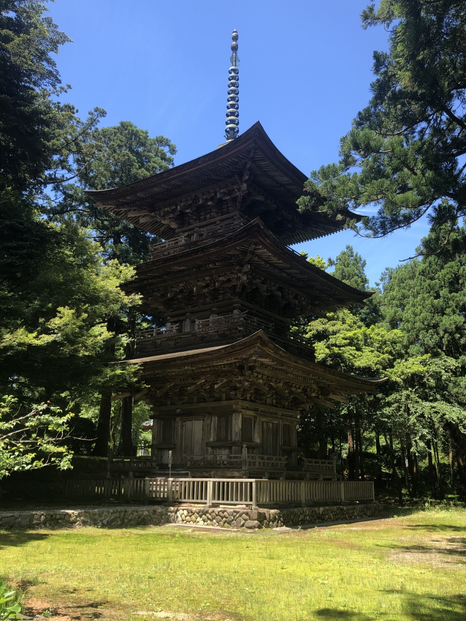 乙宝寺は奈良時代の736年、聖武天皇の勅命により、インド僧と行基菩薩が北陸一帯の安穏を祈って建てた勅願寺である。「今昔物語」、「古今著聞集」などにこの寺が記載されている真言宗智山派の寺院で、広い境内に多くの建物が建っている。なかでも1620年村上城主建立の三重塔は純和様建築で、国の重要文化財に指定されている。- 旅行時期
