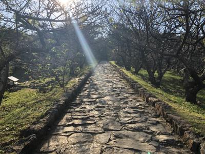 日本100名城の一つで世界遺産にも登録されている今帰仁城(なきじんじょう)を訪れた。アクセスは不便で、レンタカーを借りて走るしかない。北山王が13世紀末ごろに築いた城郭、その後薩摩郡に攻められ焼失し、現在は遺構と石垣のみが残る。「百曲り」の石垣はまるでミニ万里の長城、死角がないよう設計されている。当時明国と交易が盛んで明らかに中国文化の影響を受けている。