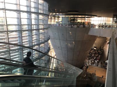 コンセプトは「森の中の美術館」で、彼の設計であるクアラルンプール国際空港が「森の中の空港」であったことが思い出された。解説書によれば、この美術館は地下1階、地上4階、敷地面積30,000m2、延床面積47,960m2あり日本最大であるという。最上階にはおしゃれなレストランがあり、次回予約して訪れたい。