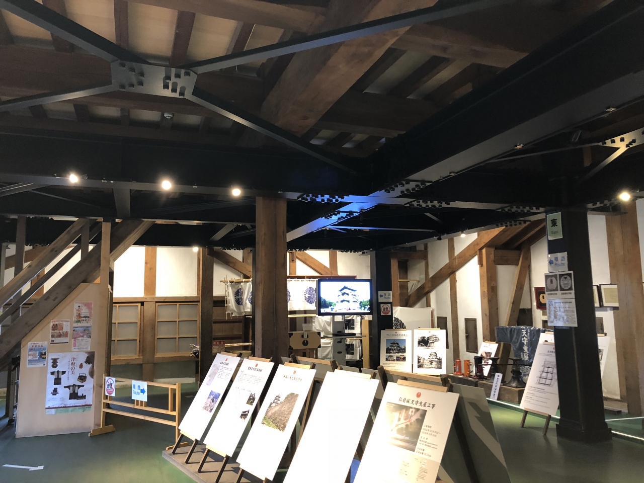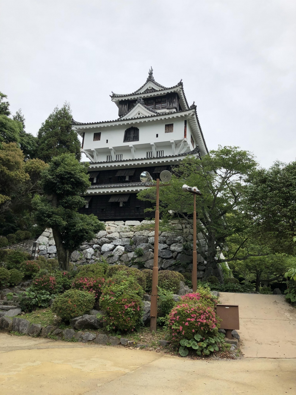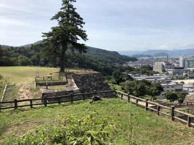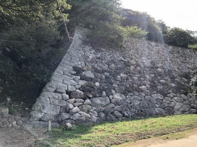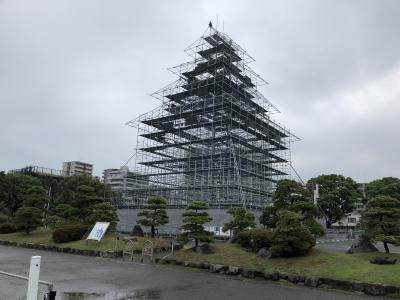 市役所の横の駐車場に停めてまず仮設足場材で作られた天守閣が目に入る。夜になるとライトアップされるそうだ。しかし現存するのは天守台、櫓が2つと土塀、堀のみで見るべきものは少ない。- 旅行時期