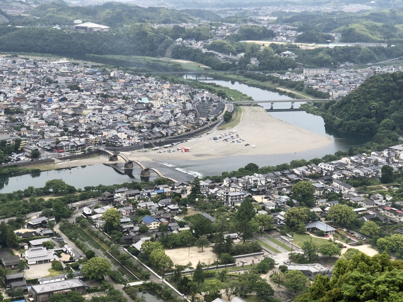 錦帯橋を渡ってロープウェイで山頂まで登る、天守閣から錦帯橋や瀬戸内海の眺めは素晴らしい