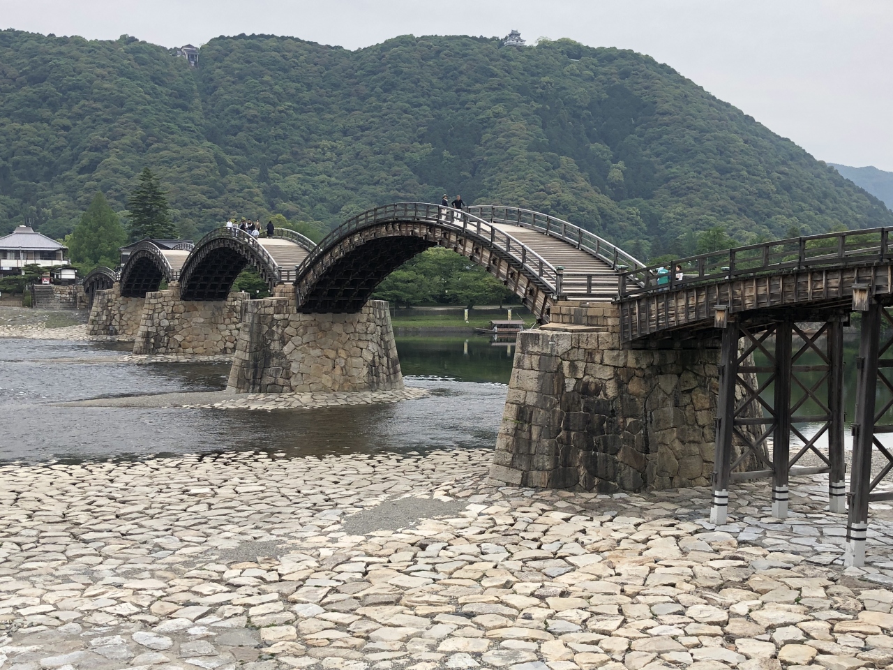 岩国城は1608年に初代藩主吉川広家により築城され、現在の天守閣は昭和37年に再建されたもので桃山風南蛮造りの全国でも珍しい山城であるという。残念ながら鉄筋コンクリートの再建は少々味気ない。夏には鵜飼が行われるなど、岐阜城と長良川を思い出させる。天守閣4階からは錦帯橋と錦川、岩国旧市街と瀬戸内海の眺めは素晴らしい。- 旅行時期