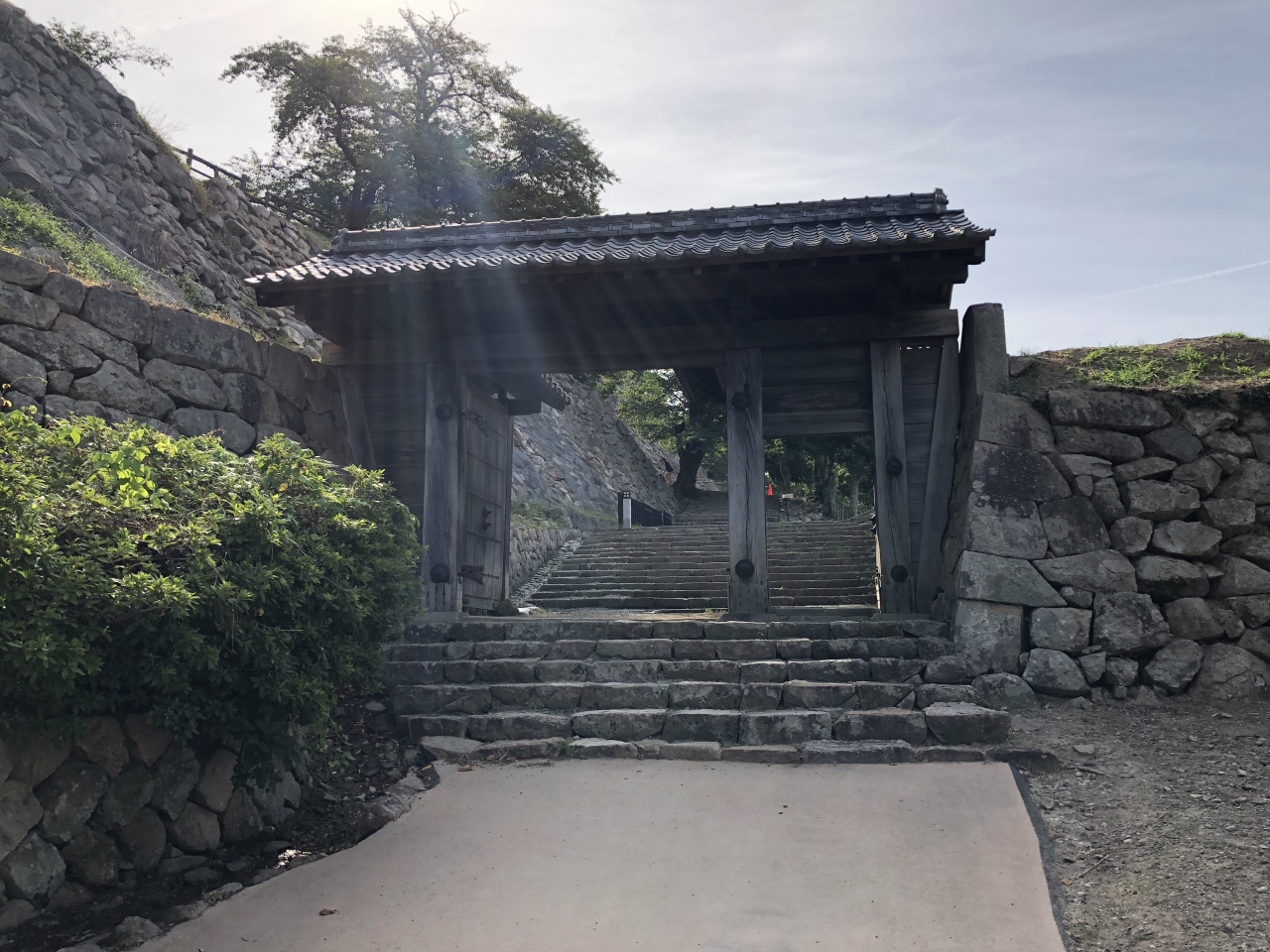 日本100名城の1つ、北門と大手門が再建されているが、天守閣は跡地のみ