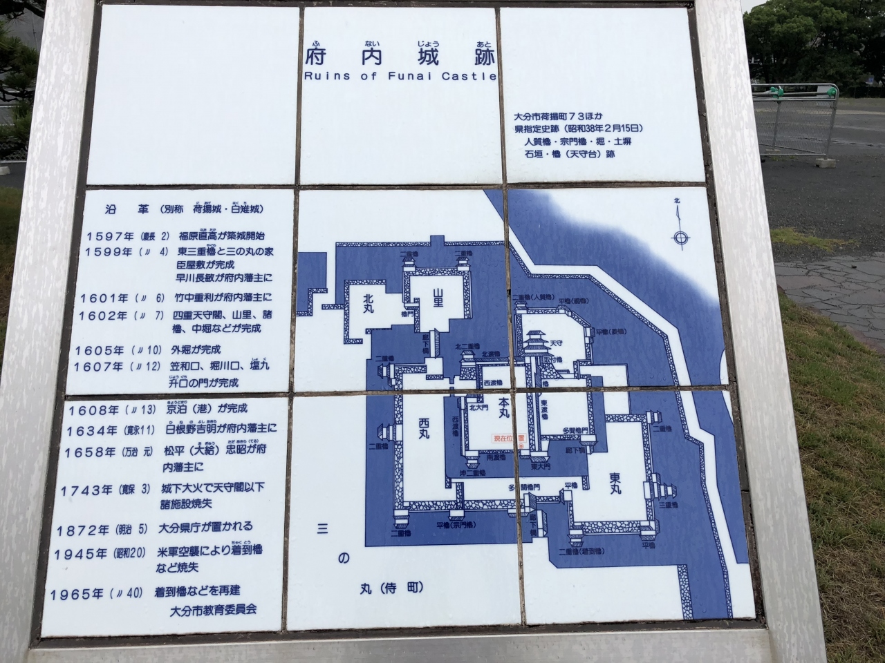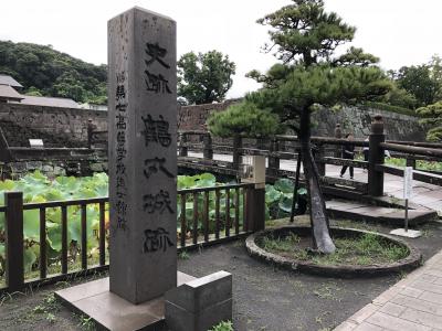 広島滞在中の週末、車で日本名城100の57ヶ所目に大分府内城を訪れた。時折激しい雨が降る中、金曜日の終業後、山陽自動車道に入り、防府市内で1泊、朝7時に出発して大分府内城には10時頃到着した。大分駅からは徒歩15分の街中にある。