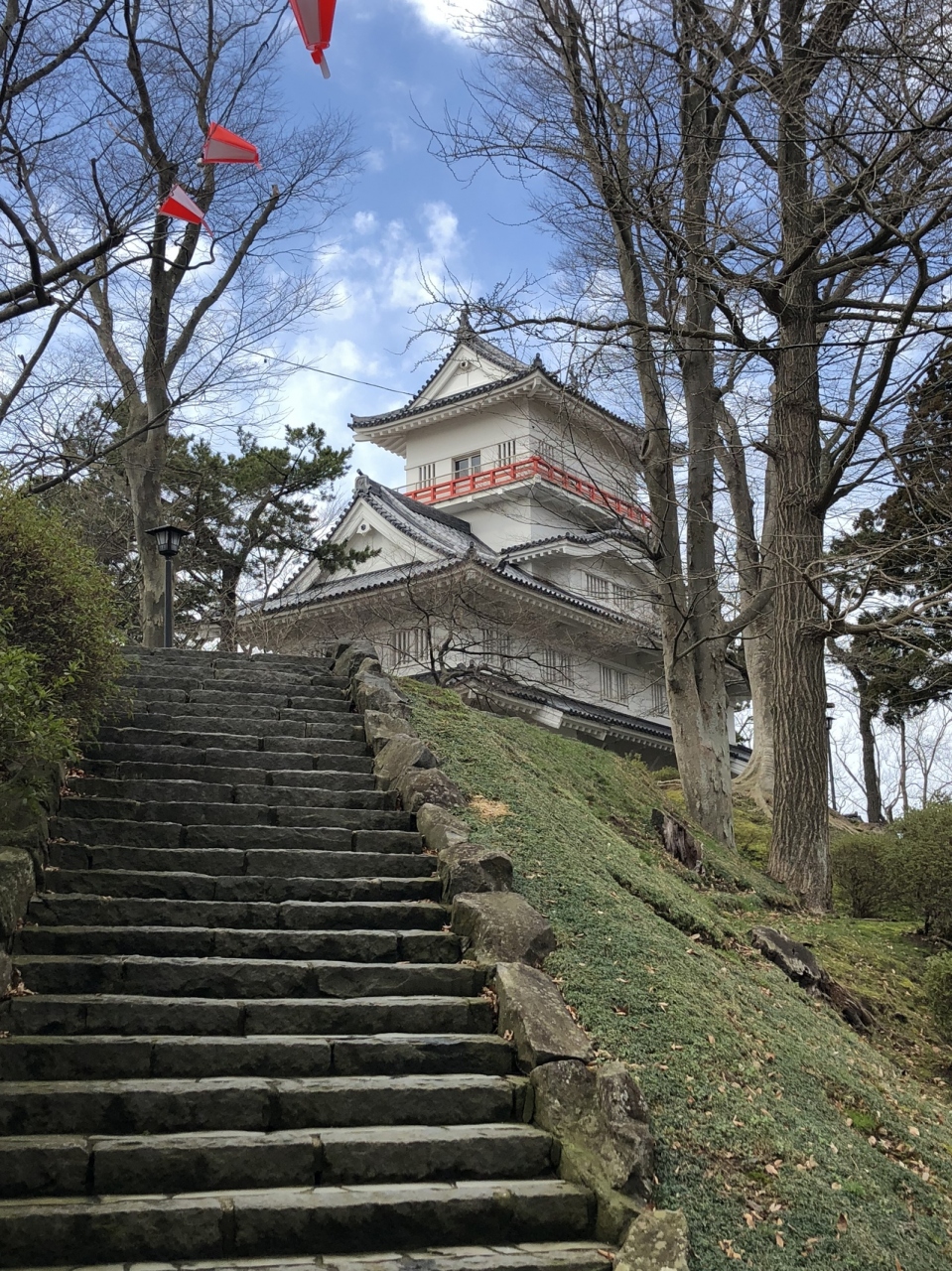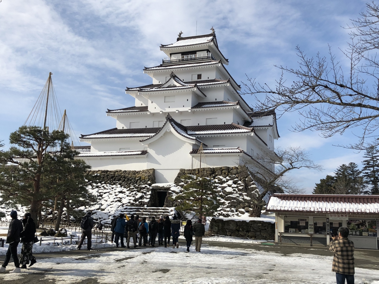 鶴ヶ城は1593年に築かれ、1868年の戊辰戦争まで現存したが、その後解体された。1965年に鉄筋コンクリート造で再建された。その規模は江戸以北では群を抜く規模だ。赤い瓦と、名古屋城の金の鯱に対抗して銀の鯱を持つなど話題に事欠かない。- 旅行時期