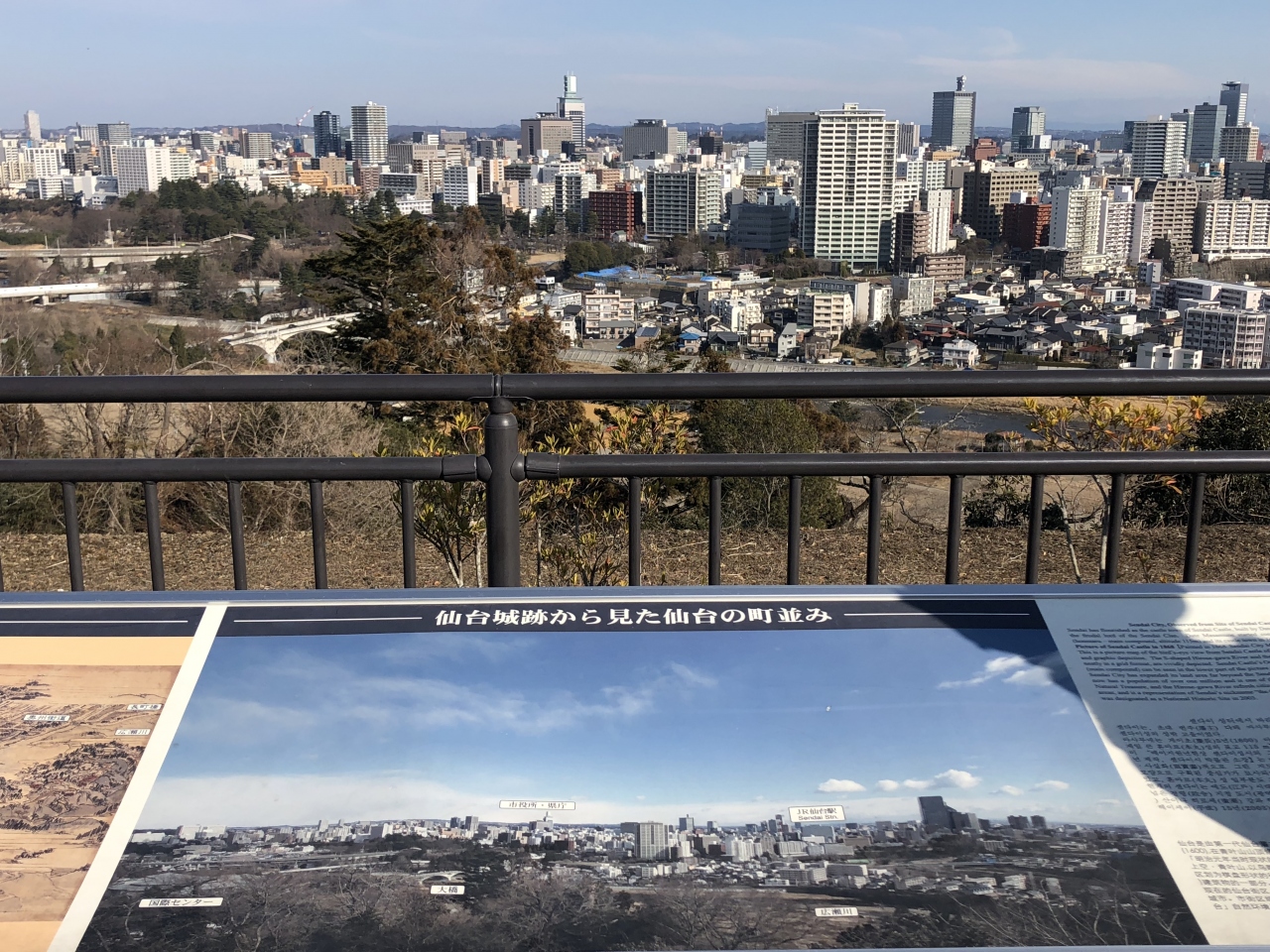 仙台城は1603年に戦国の雄、伊達政宗により築城された。時は徳川家康の天下となり、天守閣が築かれることはなかった。残っていた大手門、隅櫓も大戦末期の空襲で焼失し、今は市民公園となっている。本丸跡には護国神社、土井晩翠の荒城の月碑、伊達政宗の騎馬像などが立っている。建築物としては脇櫓が再建されているのみ、仙台市のシンボルとして城としての整備が望まれるところだ。- 旅行時期