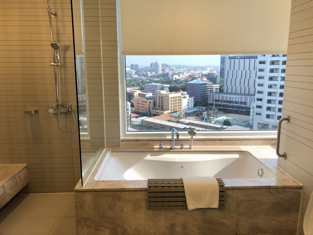 パタヤビーチの北端にありビーチが一望できる高層ホテルで、ビーチまで徒歩5分、ターミナル21ショッピングモールも徒歩10分、マッサージ店やティファニーシアターも徒歩圏内で便利である。バスタブがついてホリディインにしては高級感があり、家族連れにも最適、コストパフォーマンスが高い。