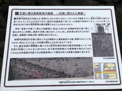 鹿児島城は関ヶ原後の1601年ごろに島津家久が築城、強固で広大な城であったが、一部の石垣が現存するのみである。ここではむしろ、周囲に現在放映中の西郷どんの所縁の史跡が散在し、西南戦争の間、西郷どんらが身を潜めた洞窟、また彼らの終焉の地、墓などを見ることができる。- 旅行時期