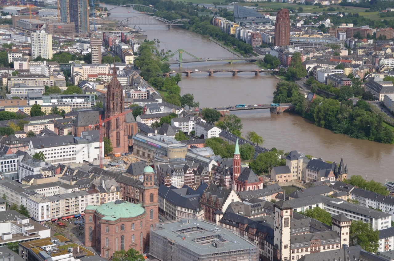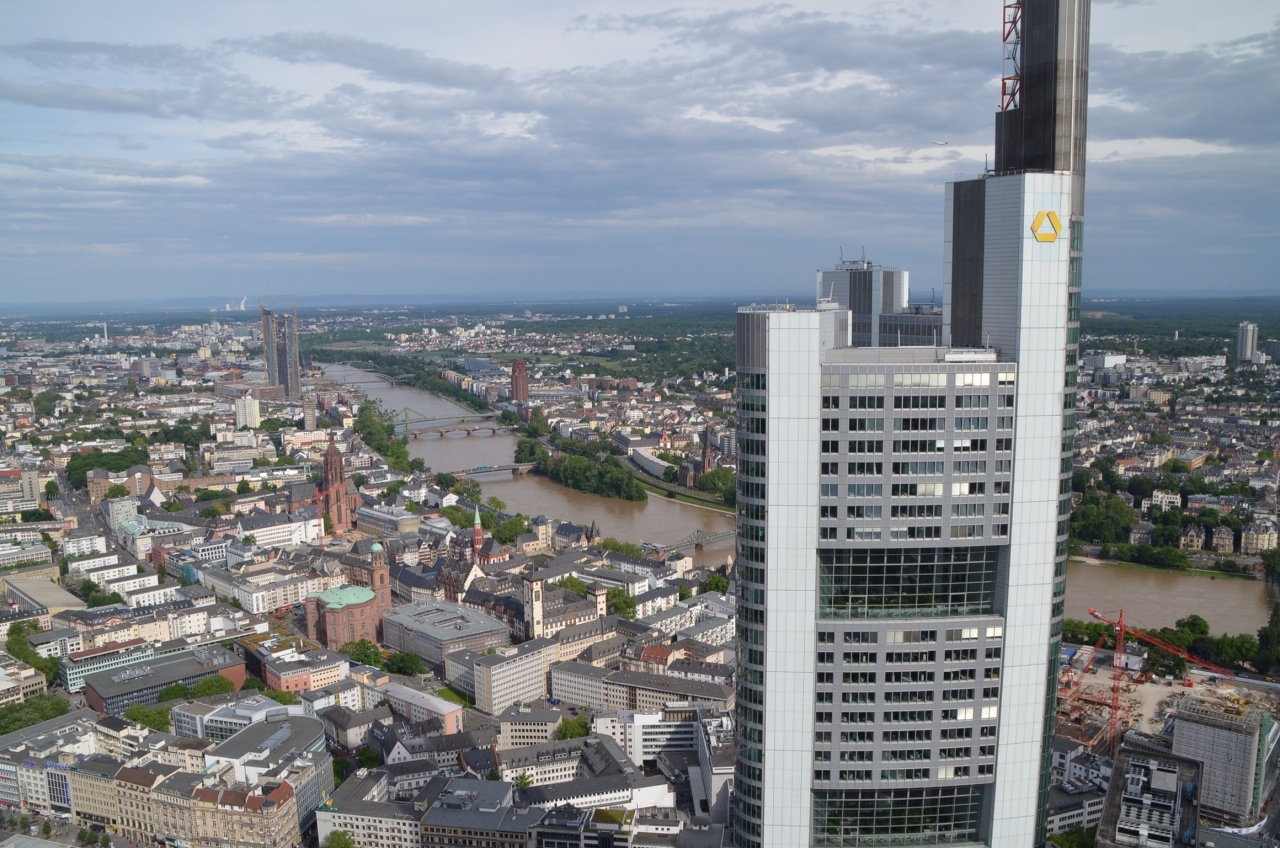 以前訪れたドバイのブルジュ・ハリファの828mや、タイペイ101の508mとは比較にならないとは言え、マインタワーの200mの屋上デッキに登るとその眺望は素晴らしい。入場料は5ユーロ、周囲の森に包まれて超高層ビルや、フランクフルト中央駅、空港の遠景などを眺めることができる。- 旅行時期