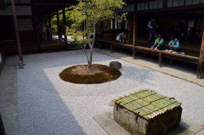 建仁寺は京都最古の禅寺であり、臨済宗の大本山で、開山は栄西禅師、鎌倉時代建仁2年(1202年)の開創、などとパンフレットにある。禅寺らしく石庭を眺めながら、縁側で瞑想することもできる。