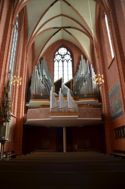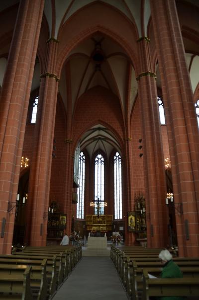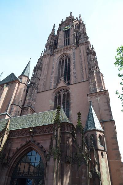 レーマーからほど近いところに大聖堂が見える。1356年神聖ローマ帝国皇帝カール4世によって皇帝の選挙は選帝侯によりフランクフルトで行うということが定められ、1562年から1792年の間は皇帝の戴冠式もここザンクト・バルトロメウス教会でおこなわれた。そしてこの教会はカイザードーム(皇帝の大聖堂)と呼ばれるようになった。