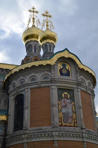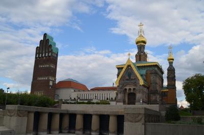 成婚記念塔とロシア正教会の黄金のドームはダルムシュタットの象徴