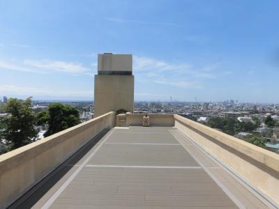 斜面に建つため、4階建てなのにどこを垂直に切り取っても2階建てとなっている個性的な設計、大阪湾を一望できる眺望、栃木の大谷石をふんだんに使い、細部までこだわった装飾などみどころたっぷりでした。