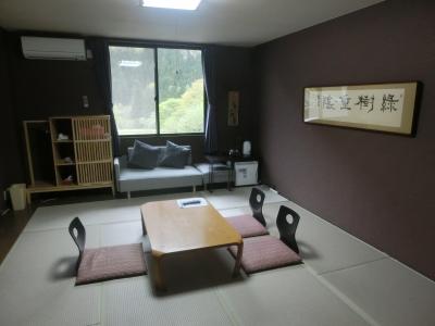 「湯季の郷 紫泉」はご主人が書家とのことで、ご本人の作品も含め、アート作品が多く飾られています。アートな雰囲気に、地元食材を使った自家製料理、そして温泉と素晴らしい宿でした。湯野上温泉の民宿では唯一、全室にトイレが完備というのもポイントです。部屋には冷蔵庫やソファーもあり、もはや民宿という概念を超越しています。
