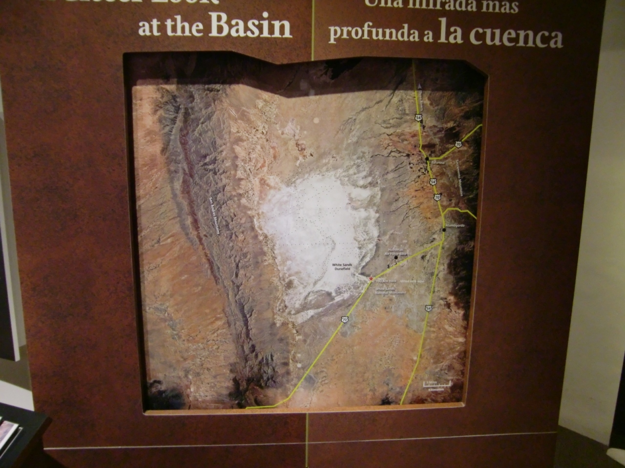 白い砂の成分は石膏。約2億5千万年前、この地域は浅い海、ここに石膏が堆積。これが約7000万年前に隆起で押し上げられた。雨や雪解け水に溶け込んだ石膏はこの地域で最も低いルセロ湖に貯まります。ルセロ湖に出入りする川はなく、湖の水が蒸発することで湖岸周辺には石膏の結晶が析出します。この結晶は激しい気温や湿度の変化で風化し砂粒となり強い南西風により、ホワイトサンズが形成されたとのことです。