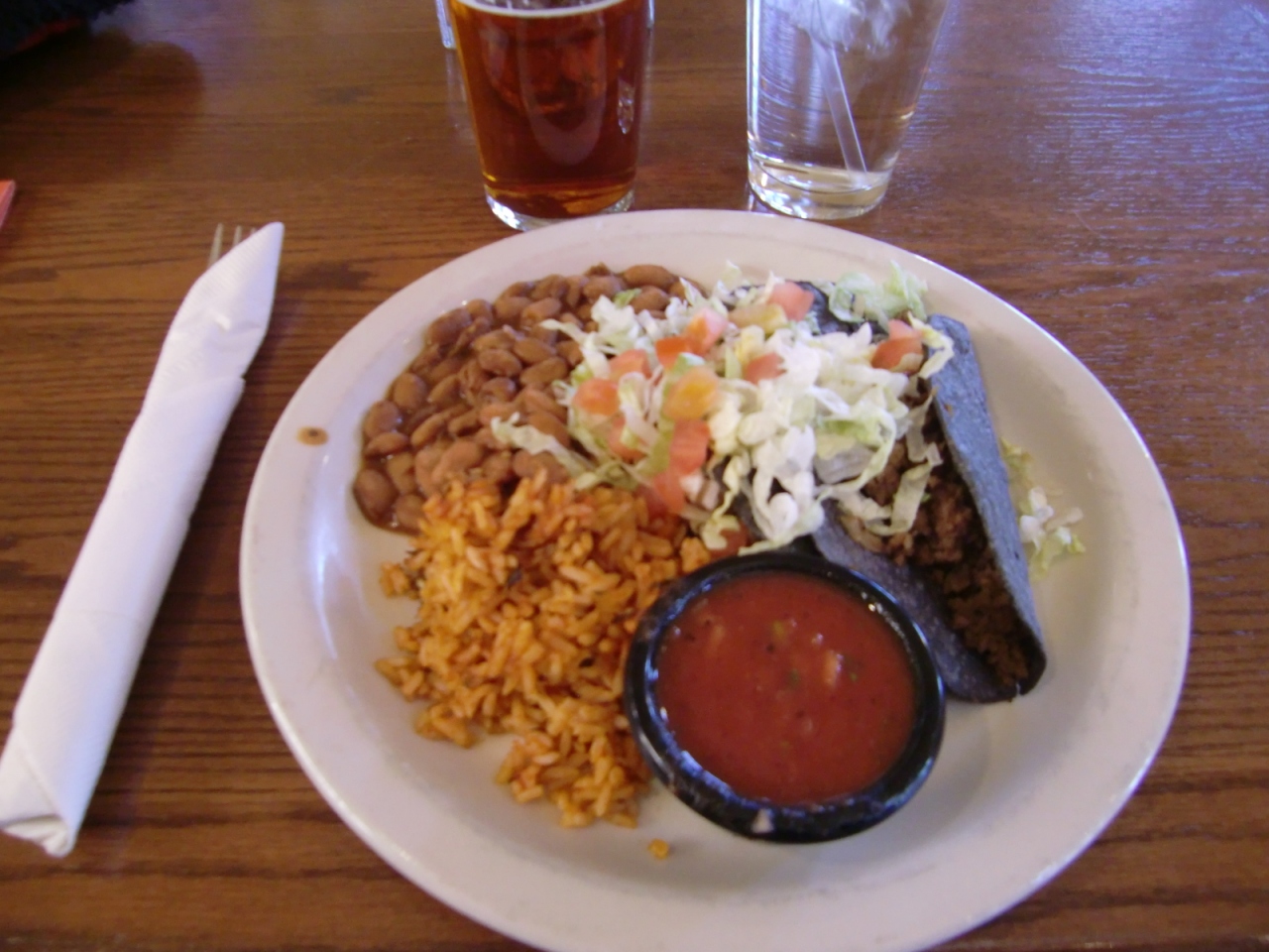 タコランチ(8.95ドル)とビールをオーダ、タックスとチップで締めて16ドル。