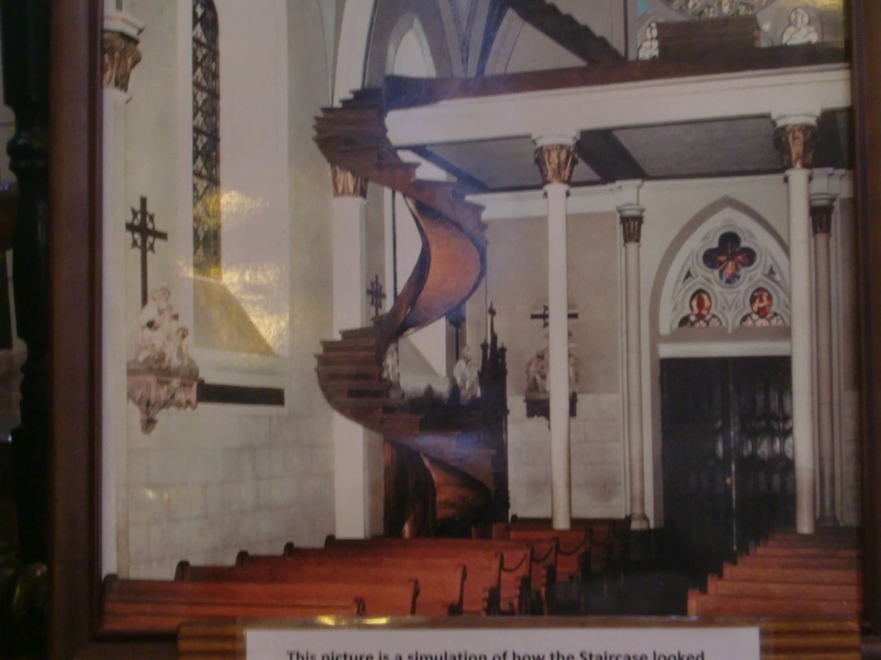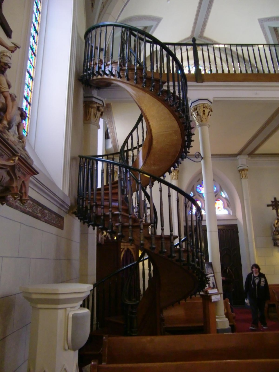中にあるらせん階段は、支柱がなく鉄の釘も使われていないのに、一度も壊れておらず「奇跡の階段」と呼ばれています。昔は、手すりもなかったとのこと。当時、のこぎり、T定規、ハンマーだけで作られたとのことですが、現在の技術をもってしても、どうして壊れないものが作られたのか理解不能だそうです。