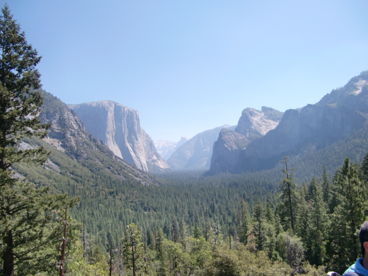 南ゲートからは、1時間弱のドライブでトンネルを抜けてすぐ左側にある展望台。ヨセミテバレーを見渡せるヨセミテ国立公園を代表する眺めです。ヨセミテに行くのなら必ず立ち寄ってください。ただし、(おそらく)いつも混んでいるので、駐車場に停めるのも大変だし、写真を撮るのも難儀です。トンネル方面からトンネルビューに行く場合は、右側にも駐車場があるのでムリに左側の駐車場に停めようとせずに、右側の駐車場に停めることをお薦めします。