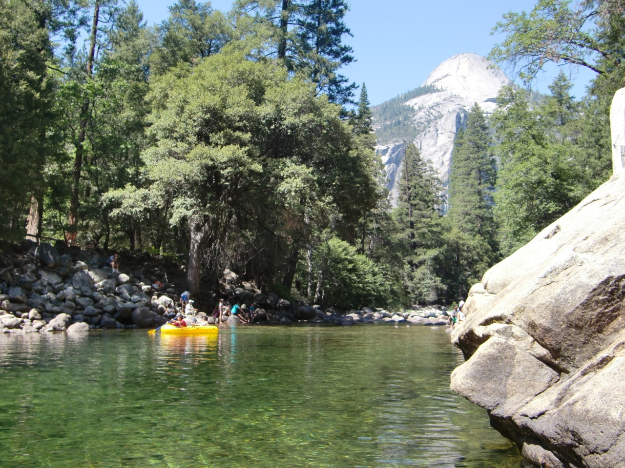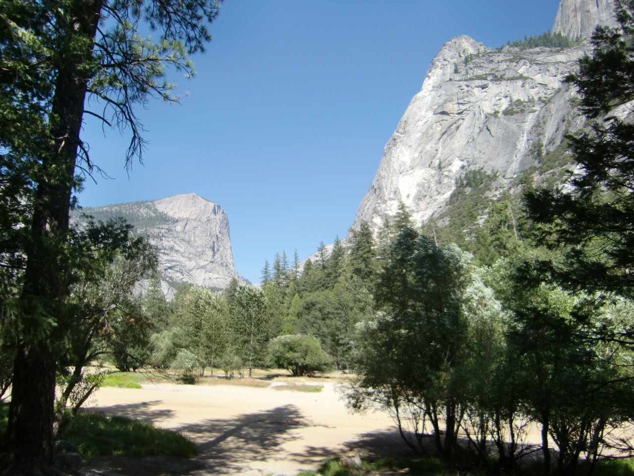 バレーのシャトルバスの17番停留所から約20分の歩きでミラーレイクに来られます。ここは、その名の通り、綺麗な風景が湖面に映りこむことで有名。必見です。が、雪解け水が流れ込まない真夏は水が干上がってしまうこともあります。砂場と化した湖底部を歩くのもまた一興でしょうか。