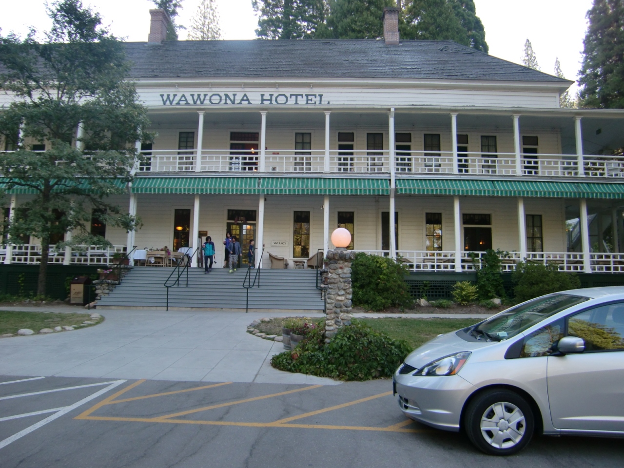 ワウォナホテルは、ヨセミテ国立公園内の南ゲートの近くにあるホテル。ヨセミテバレーまでは車で1時間弱かかってしまいます。ヨセミテバレーに泊まれればベストだったのですが、予約時点で空きのあった宿を比較した結果、ワウォナホテルを選択しました。古い由緒あるホテルなのに、朝食付きで約170ドル(税込)というお得感や、グレーシャーポイントに行くには、バレーからもワウォナからも距離的にはほとんど変わらない ということが決め手でした。