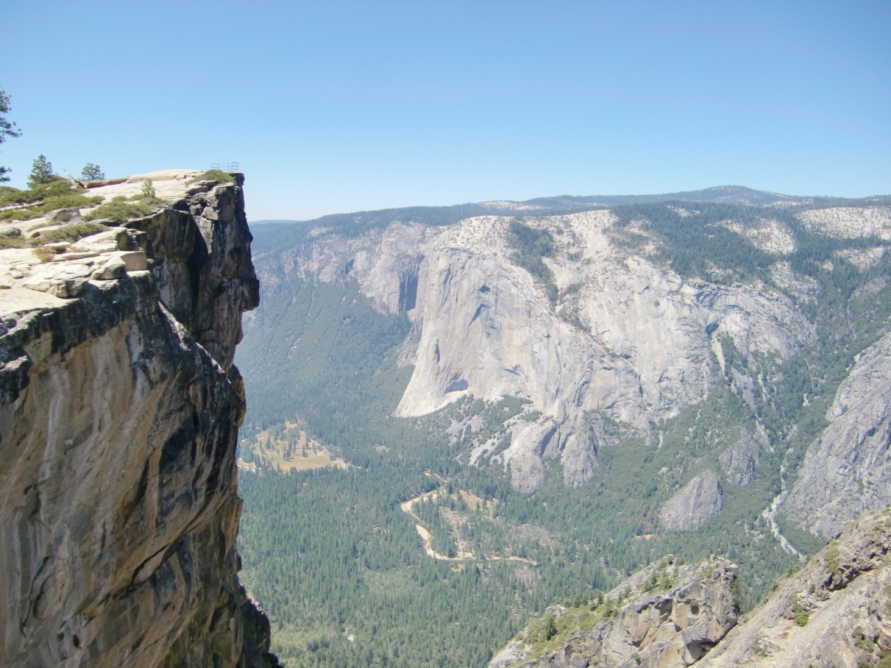 ヨセミテバレーを見下ろす断崖絶壁。スリル満点です。が、高所恐怖症の方には厳しいかもしれません。実際、一緒に歩いていて威厳満点だったフランス人家族のお父さんは、まさに絵に書いた様なへっぴり腰を披露し、子供たちに爆笑されていました。
