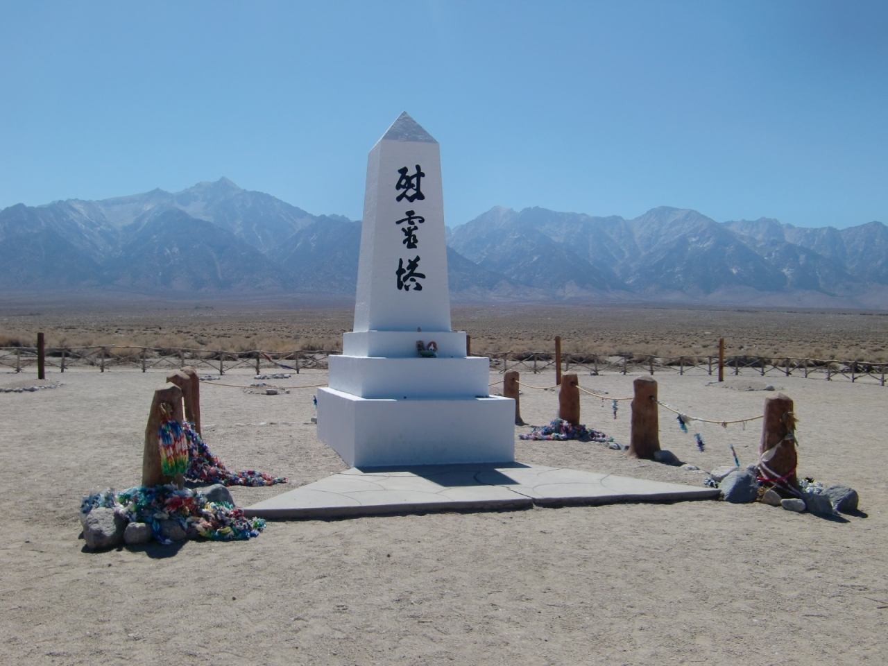 ローンパインの町から9マイルほど国道395号を北上したところにある、マンザナール国定史蹟。ここは、第二次世界大戦時に何の罪も無い日系アメリカ人、1万人以上が財産を没収されて収容されていた場所です。ビジターセンターには、当時収容されていた人達の遺留品や当時の写真、名簿などが展示されていて、当時の苦難を伺い知ることができます。外の収容所跡地は、セルフツアーで車で周れるようになっています。この様な負の遺産を国の管理で残していることに意義があると思います。平和のありがたみをつくづく感じました。