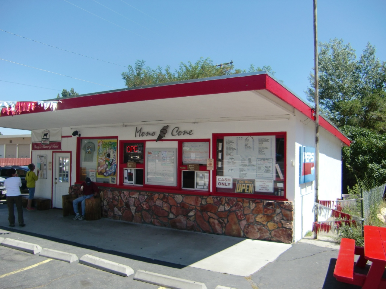 モノ湖のビジターセンター近くにある、Mono Coneという地元民に人気っぽいハンバーガー屋さん。アドレスは、51508 U.S. 395, Lee Vining, CA。