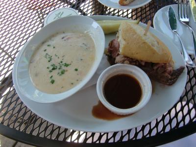 私は、クラムチャウダーとリブディップ(Prime Rib French Dip)を。嫁はんは、サラダとチキン。どちらも美味しくてチップも含めて38ドルはお値打ち、大満足でした。