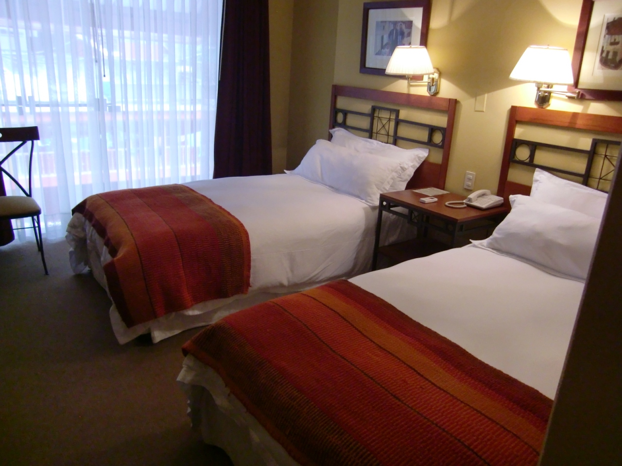 ロビーは吹き抜けになっていて良い雰囲気です。が、部屋はかなり質素な感じ。おまけに、隣との壁が薄く、バスルームでは隣のバスルームの会話が丸聞こえ。隣は日本人の女性二人組だった様で、「このシャワー、温度調整が難しいよぉ」とハッキリ聞こえました。思わず、フツーに「おぉ、そうなんですか?」と言ってしまうところでした。
