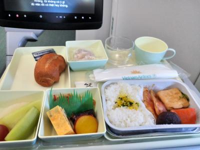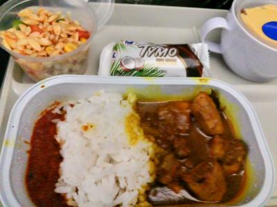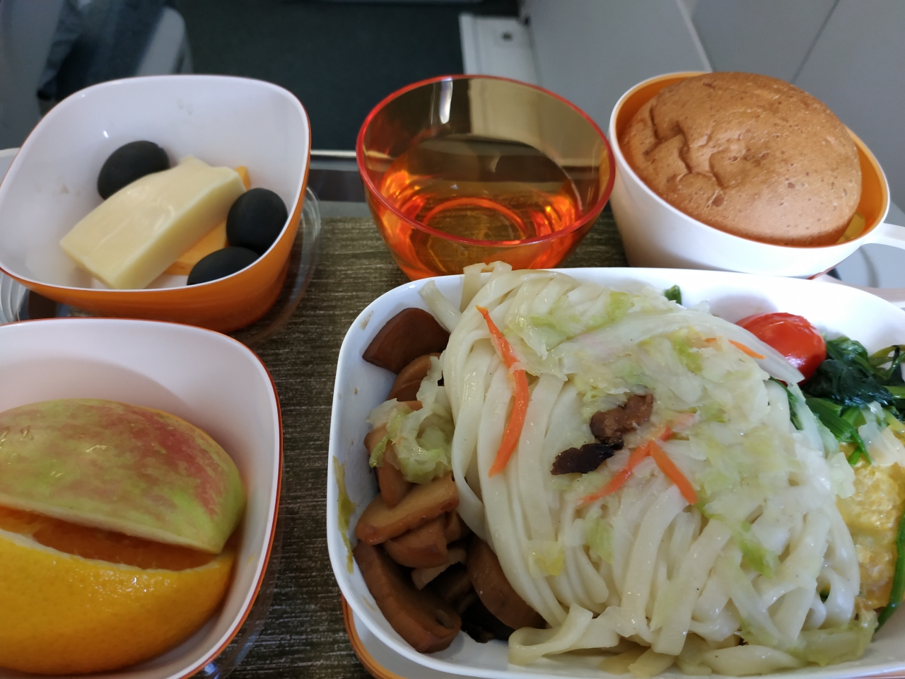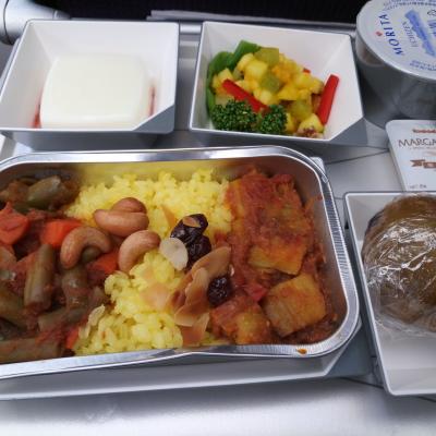 帰りは卵・乳製品使用のベジタリアンミールを指定。