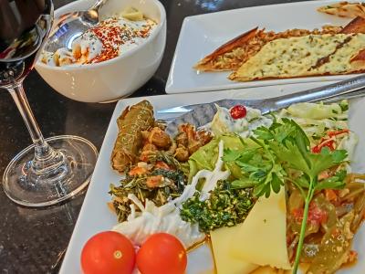 短距離フライトだからか? ワインのカップが小さくてトホホホ。