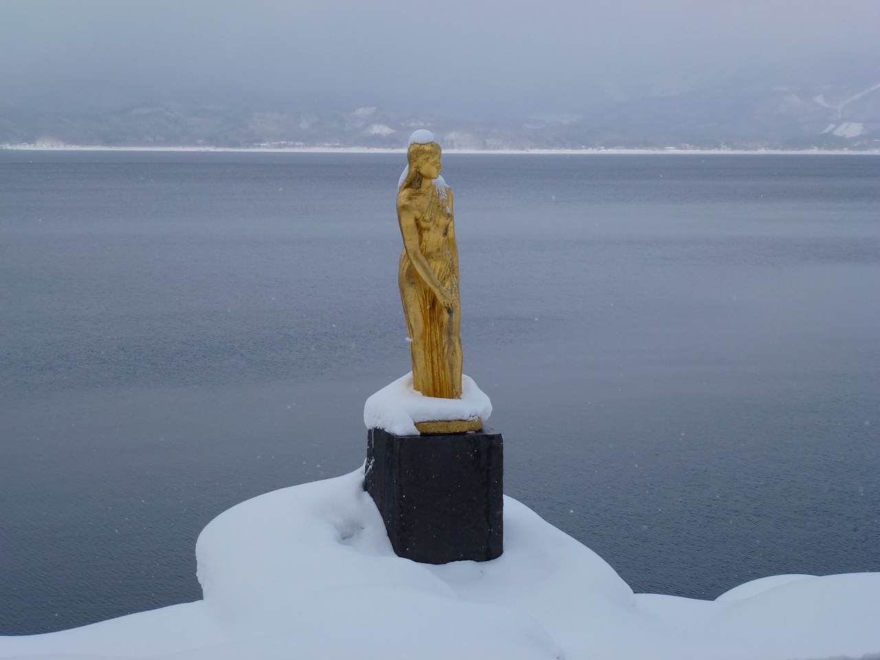 仙北市の『田沢湖』にある『たつこ像』の光景です。