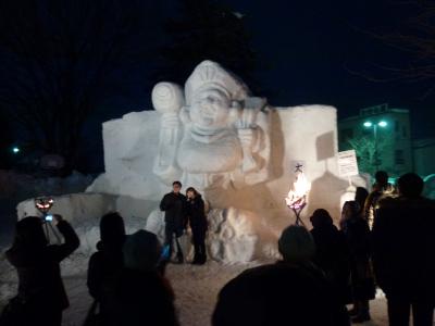 東北を代表する冬の祭りだけあって、市内各所に会場があり、巨大な「かまくら」や写真のような巨大な「雪像」などが展示されています。