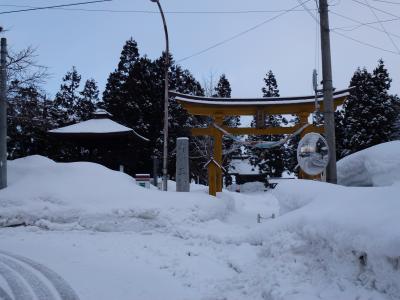 この神社は、秋田県では珍しい国重文の建造物がいくつかあるので来たのですが・・・御覧のように凄い積雪で、その建造物に近づくことが出来ず、断念!