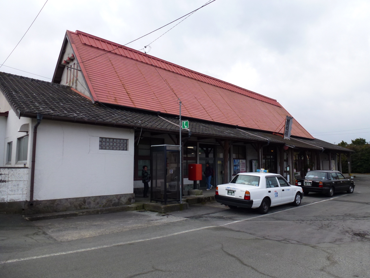 宮地駅 --- 阿蘇山を望む、どことなく山小屋のような駅です。