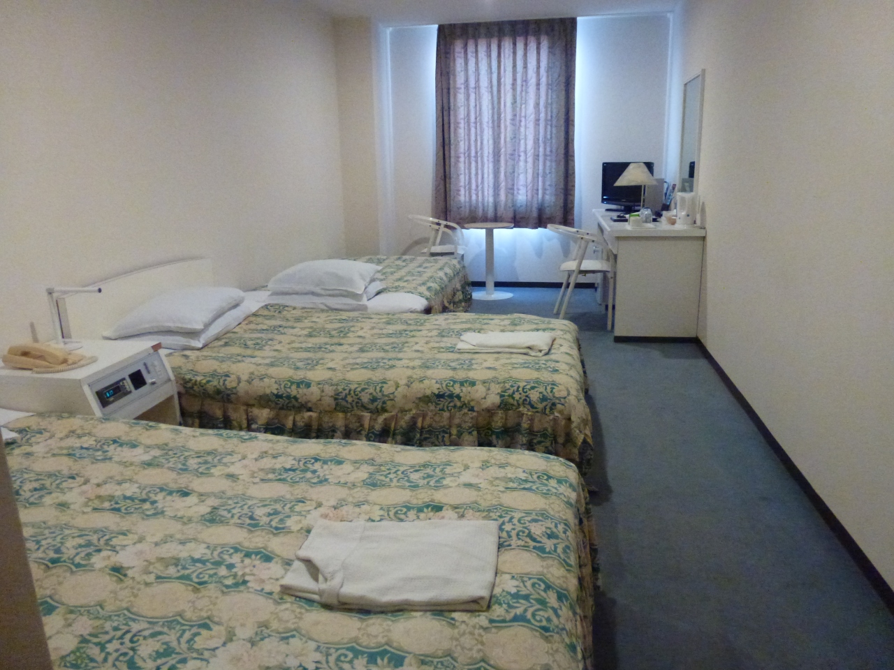 「部屋は?」というと、御覧の通り、ツインを頼んだのに、何故かベットが3つあったのが不思議でしたが、広い分には全く問題なかったので、まぁ~悪くなかったです。
