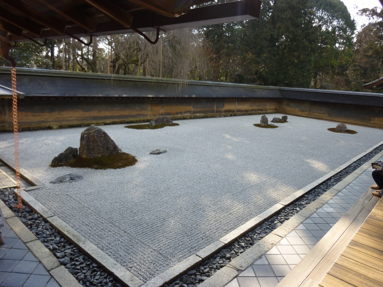 「石庭」で有名なお寺ですが、まぁ~予想はしていましたが、私はあんまり感動しませんでした。罰当たりなことに「殺風景な庭園」としか思えないんですよねぇ~。