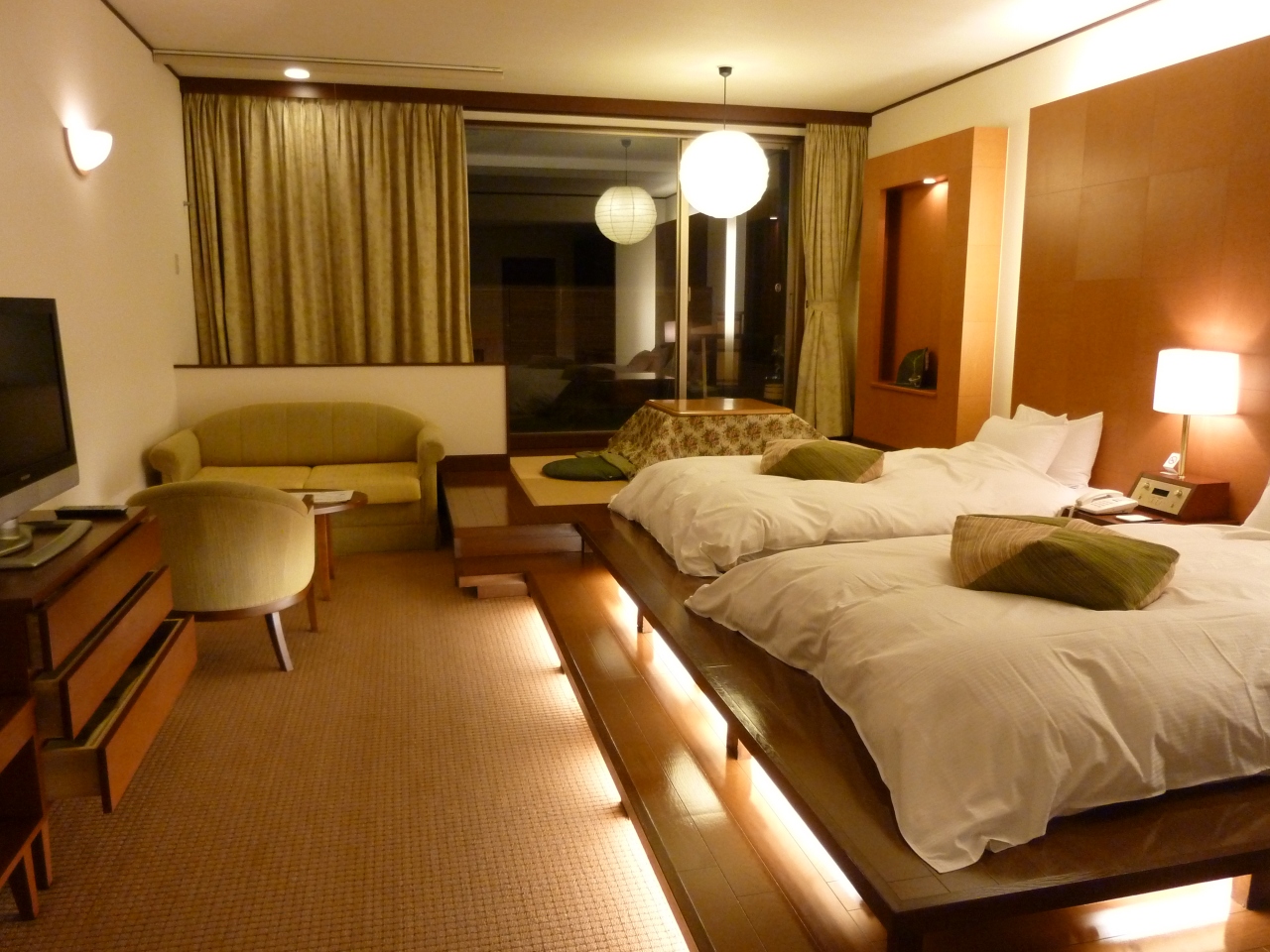 奮発して「露天風呂付き客室」に泊まったのですが文句なしでした。というのも、部屋は広くてお洒落でモダン、お風呂も湯量豊富で広々、そして食事は初体験の「ぼたん鍋」で美味しいとくれば、もう文句の付けようがありません!私の経験から行くと、このレベルで1人16,500円は安いと思いますよ!- 旅行時期