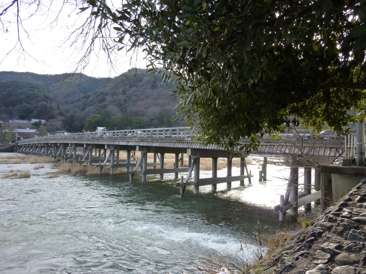 この一見、風流な木造建築物に見える橋ですが、実は木造なのは欄干部分だけで、後は鉄筋コンクリート製なんです!知ってました?私は知らなかったので幻滅してしまいました。ここは歴史の街「京都」なのですから、もっと正攻法で観光のアピールをして欲しかったと思いました。- 旅行時期